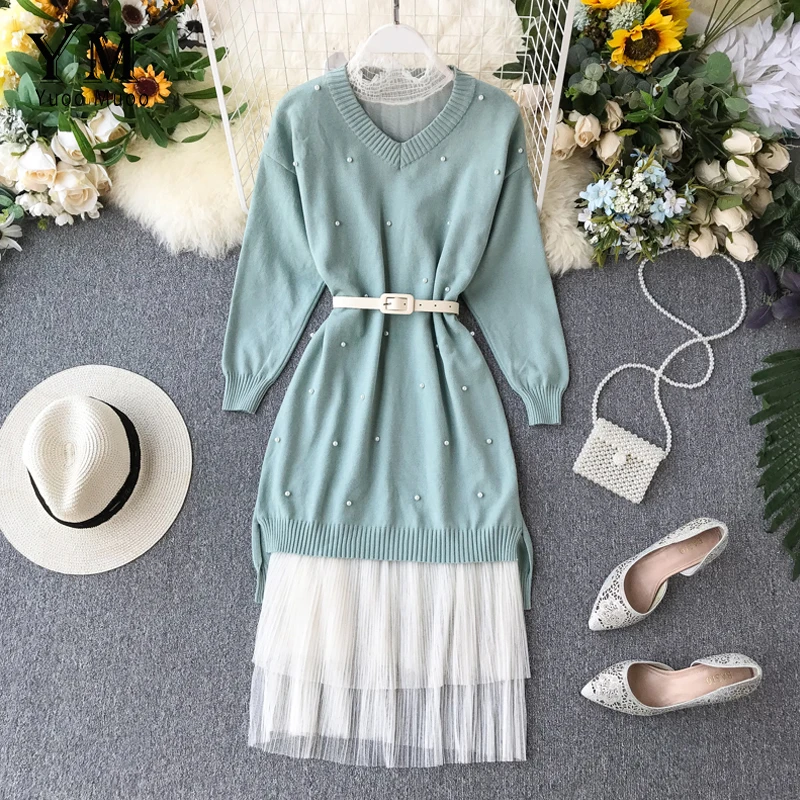 Flash Sale YuooMuoo Elegant Brand Style Two Piece Set Women Dress 2019 Fall Winter Knitted Long Lace Dress Lon